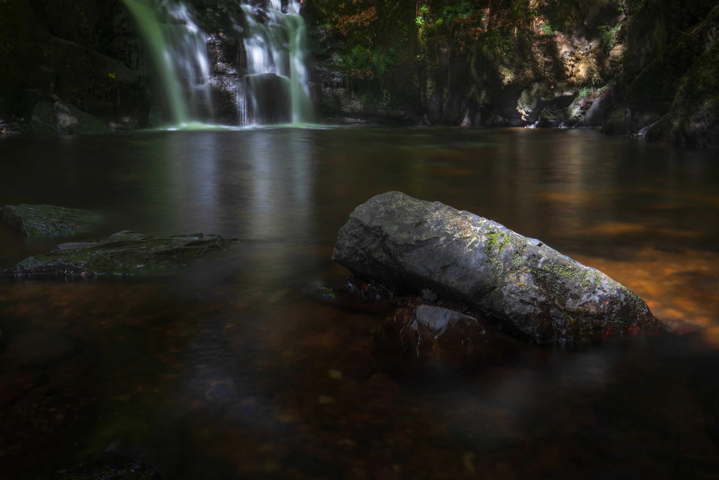 Another key aspect of this shoot was experimenting with shutter speeds to capture different effects of the water flow. For those silky smooth water effects, I used a slow shutter speed, around 1 to 5 seconds, paired with an ND filter to reduce the light entering the lens. This technique softens the water's appearance, giving it a dreamy, ethereal quality. On the other hand, to capture the dynamic energy of the water, I used faster shutter speeds, like 1/250 to 1/500 second. This froze the motion, emphasising the power and movement of the waterfall. Both approaches offered unique perspectives and added variety to my portfolio.