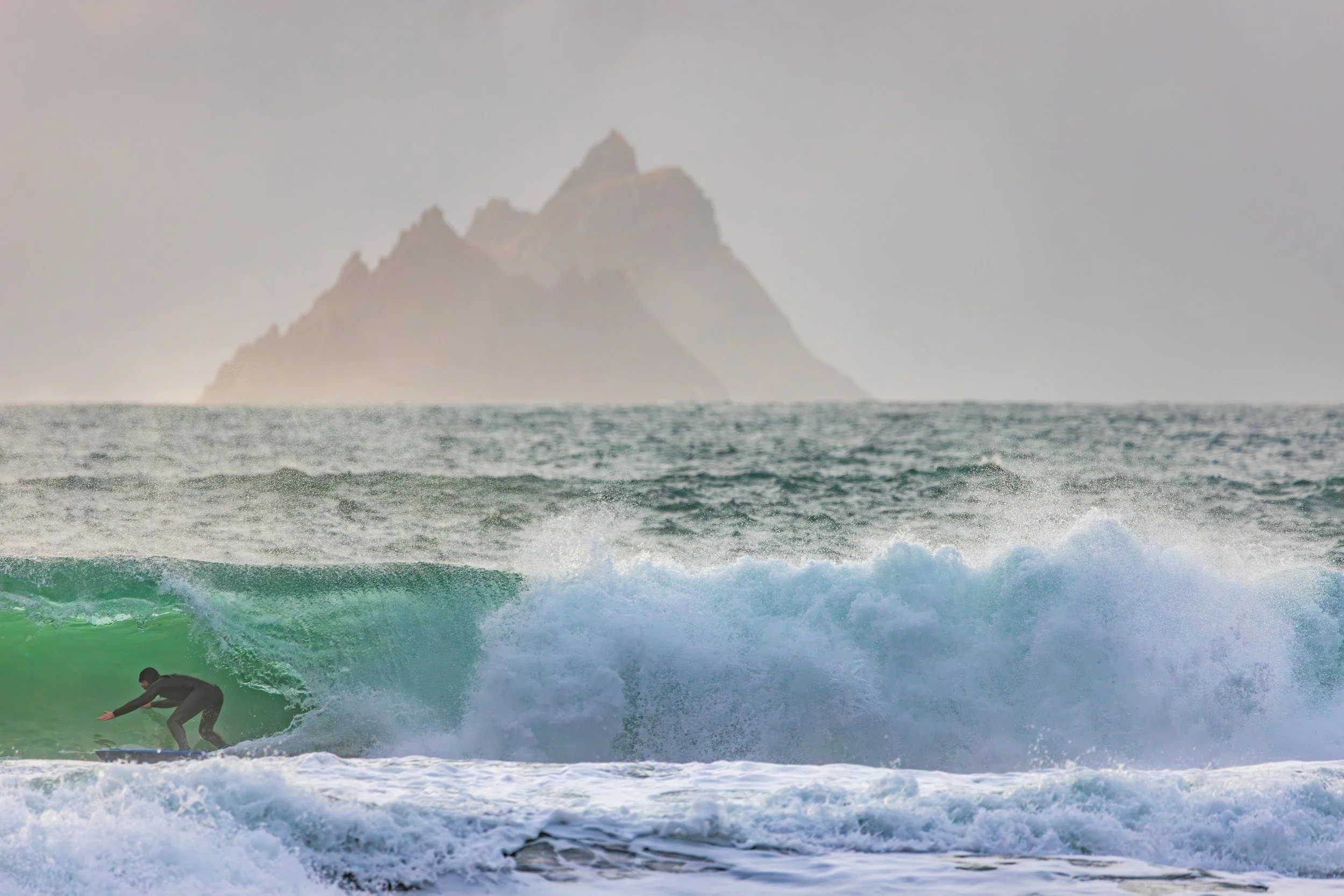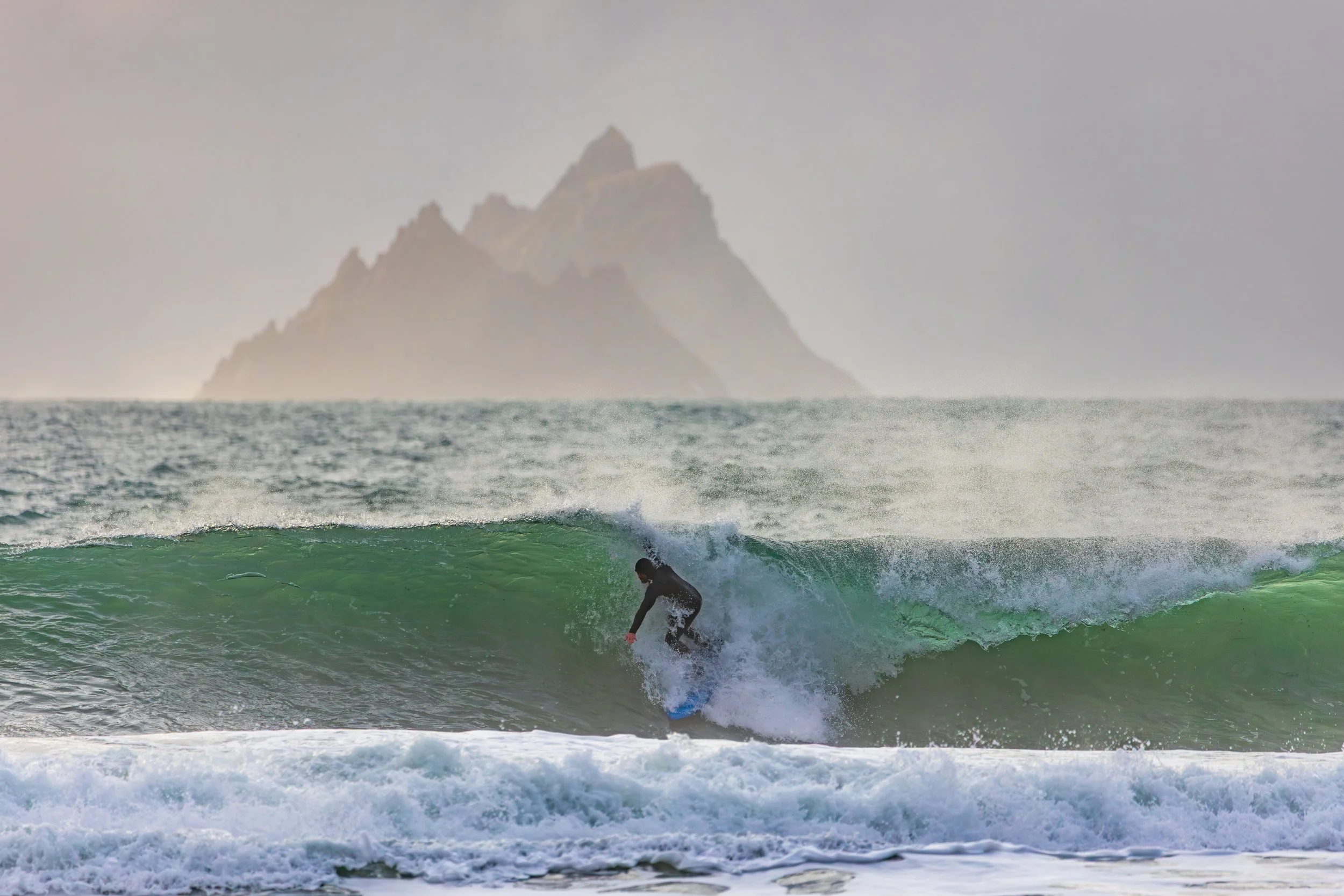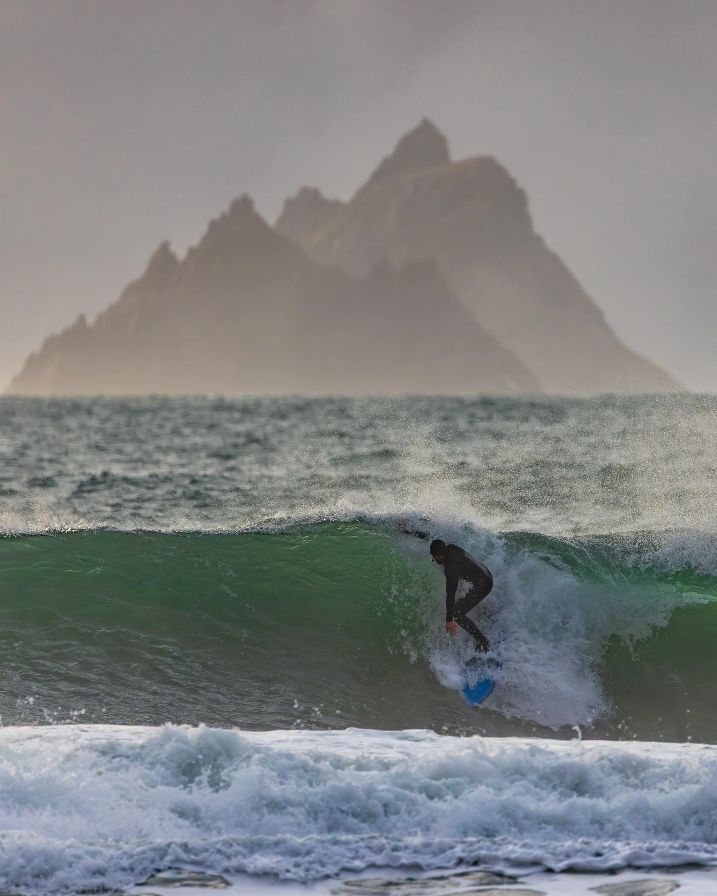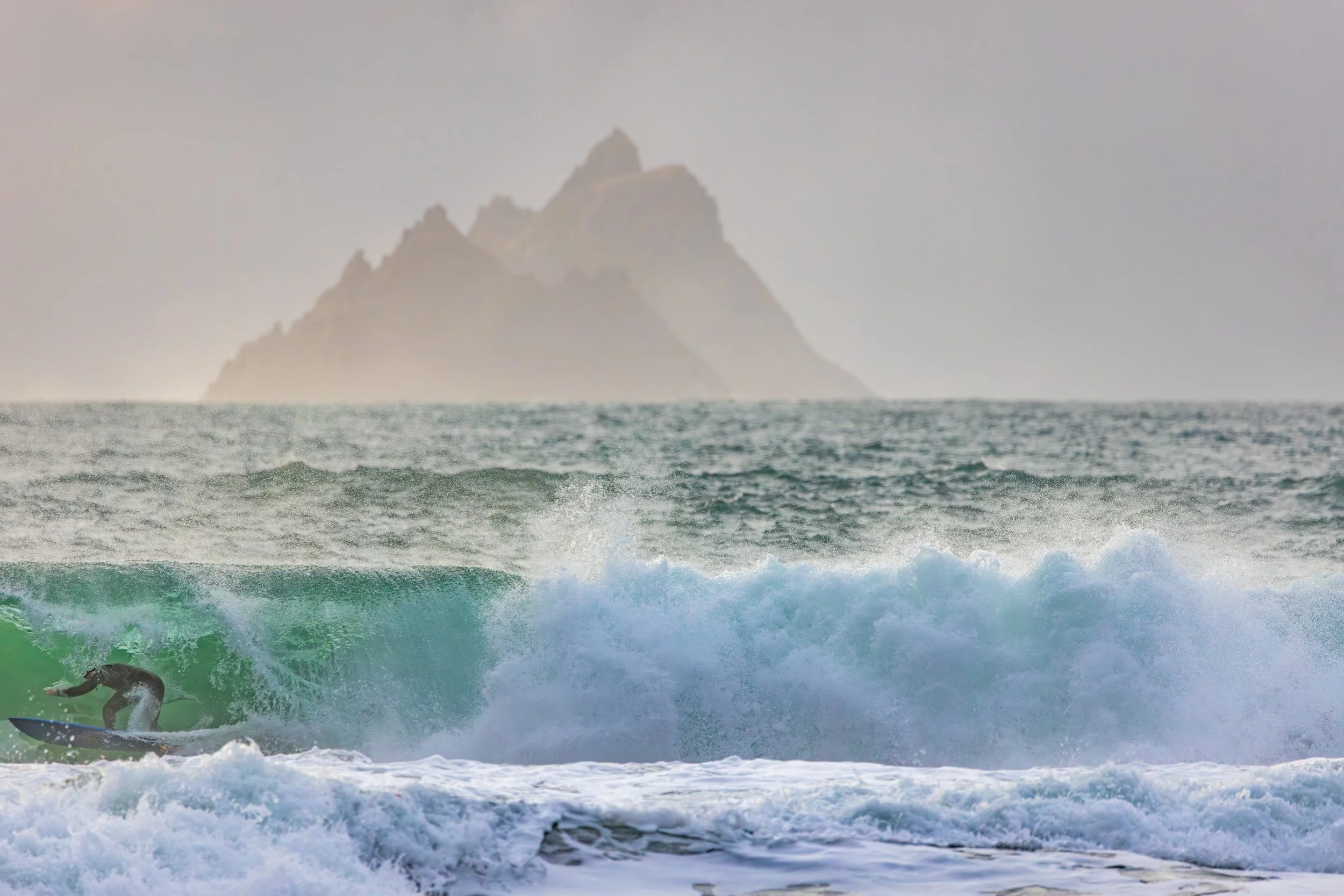 A day earlier, I’d stood in almost the same position photographing heavy waves with the Skellig Islands sitting perfectly behind them. The images worked. The Sigma 150–600mm had finally allowed me to achieve the compression I had been chasing for years at this location. I left thinking I had completed the idea.