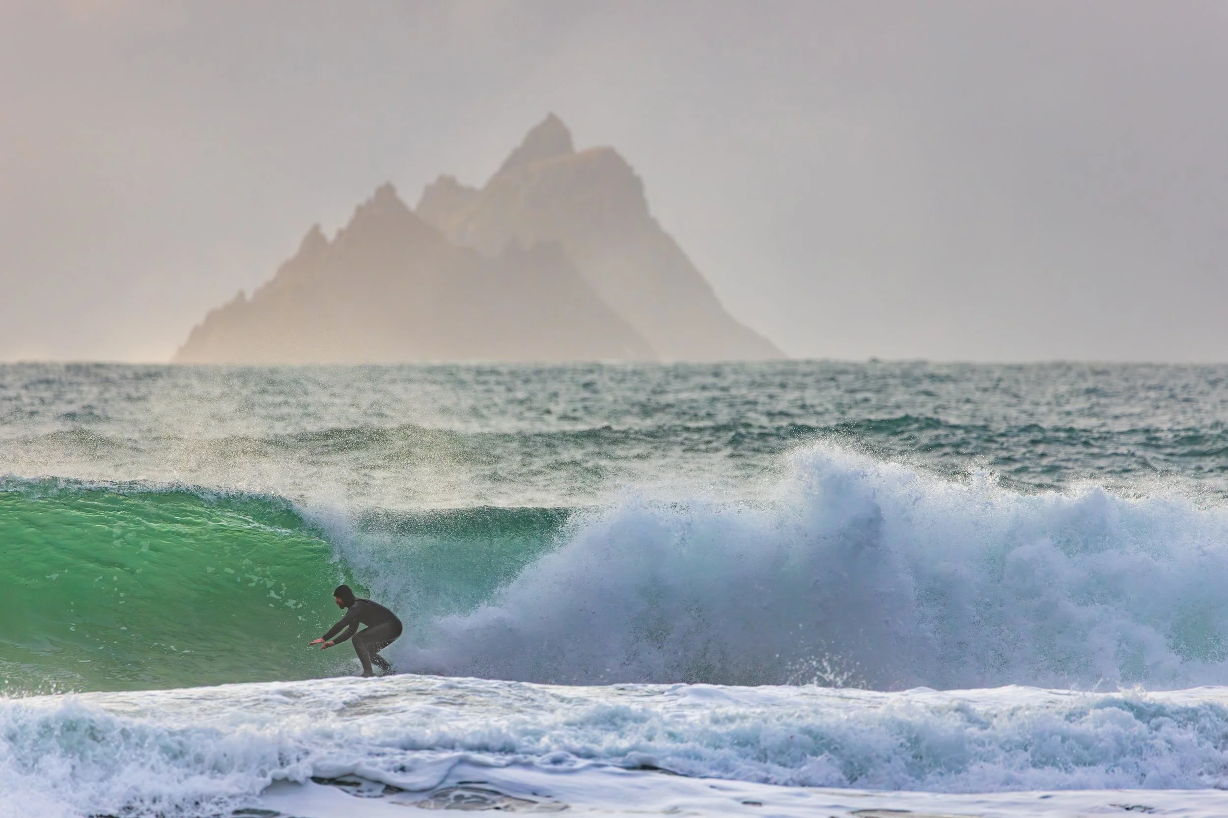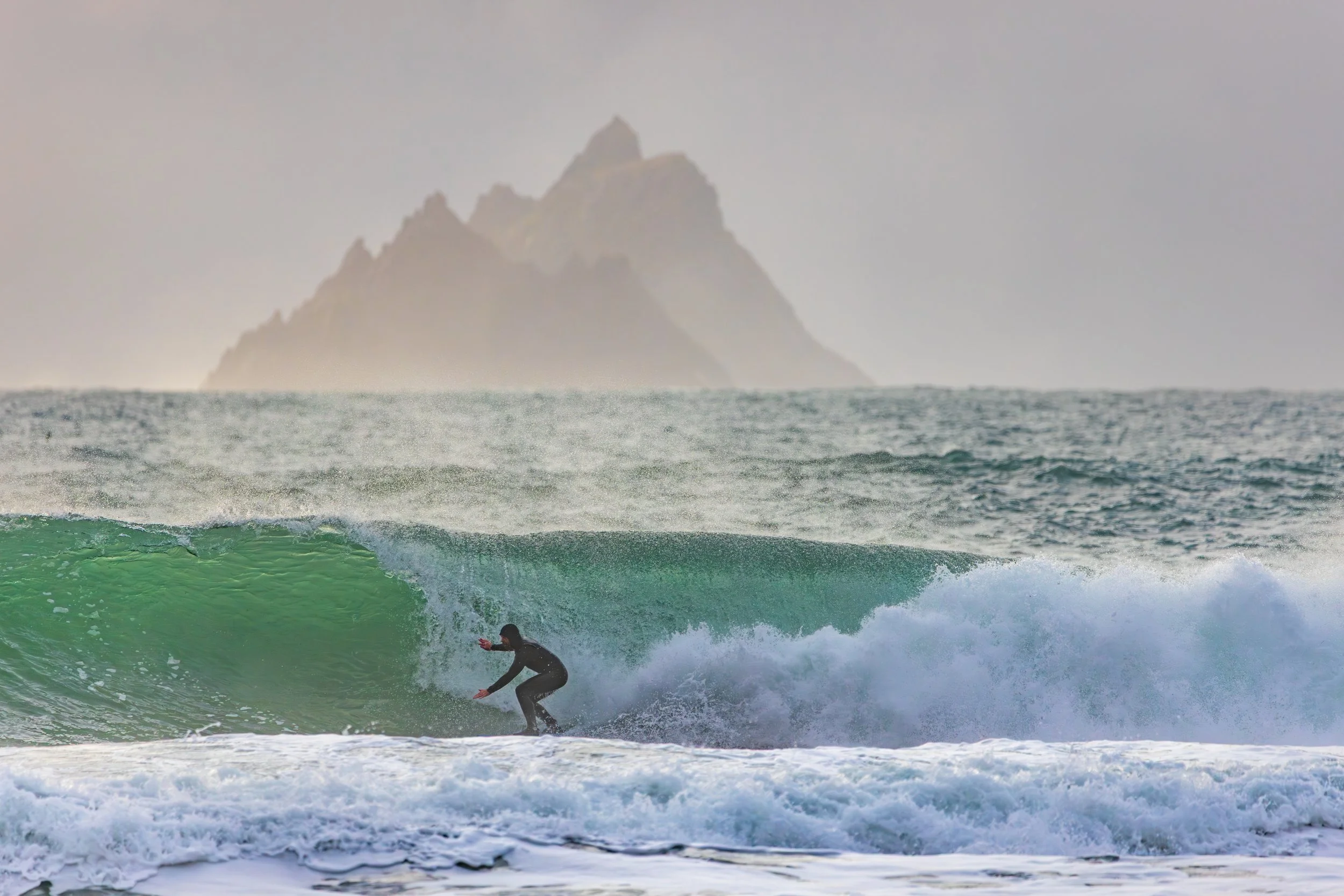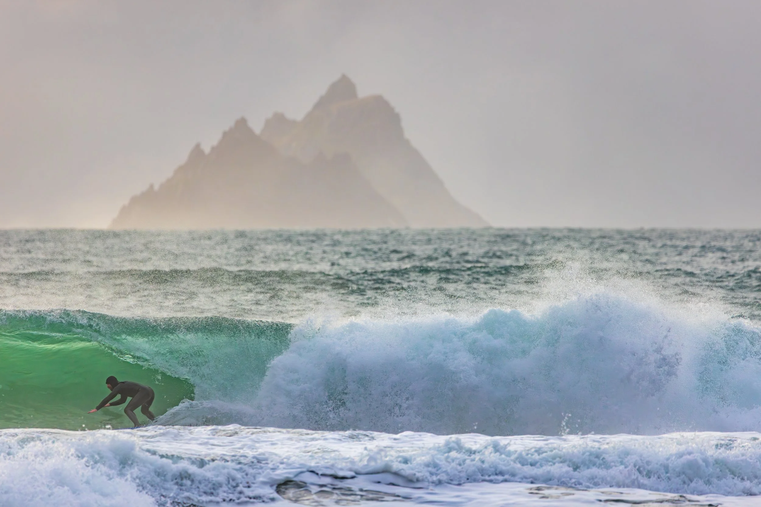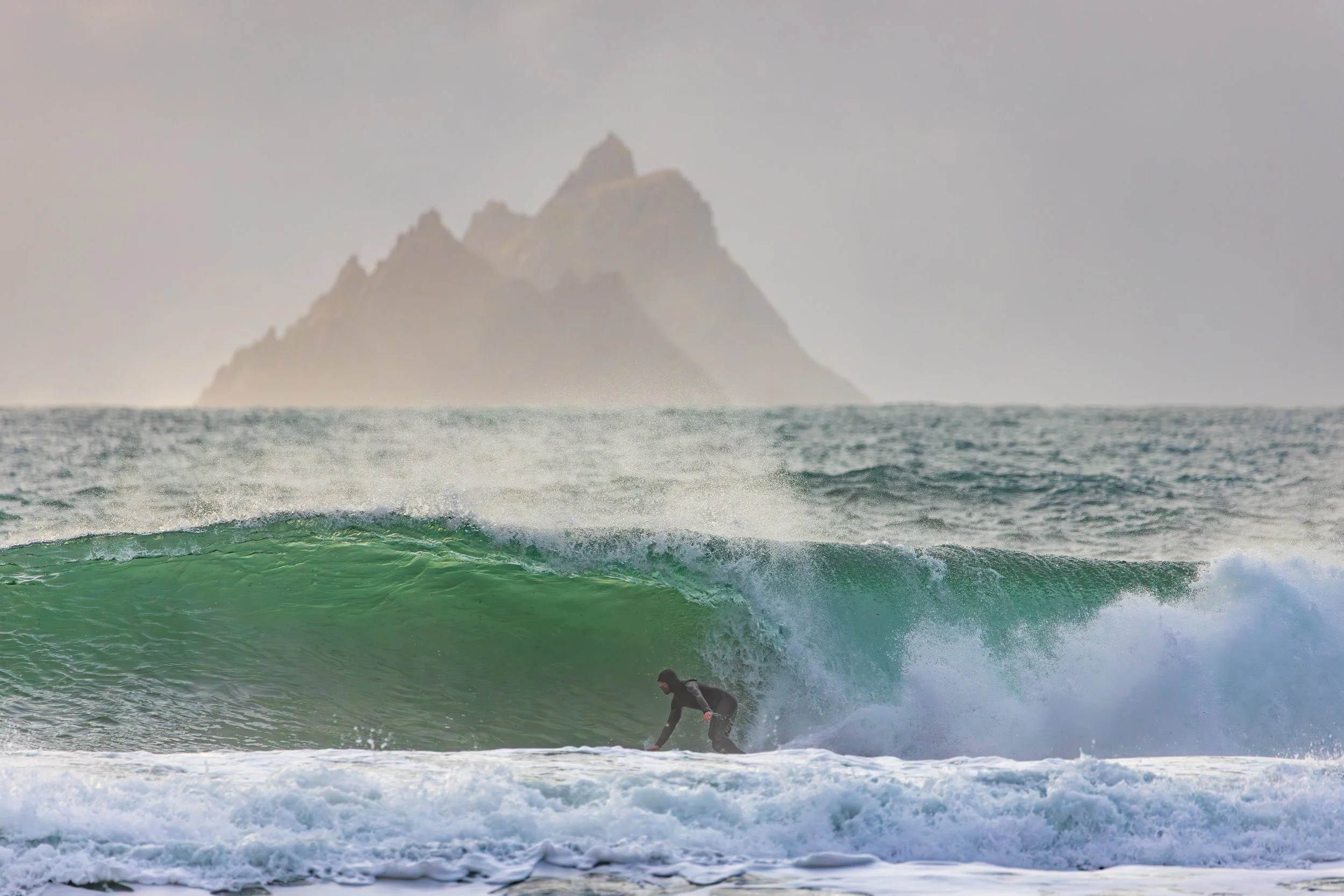 A day earlier, I’d stood in almost the same position photographing heavy waves with the Skellig Islands sitting perfectly behind them. The images worked. The Sigma 150–600mm had finally allowed me to achieve the compression I had been chasing for years at this location. I left thinking I had completed the idea.