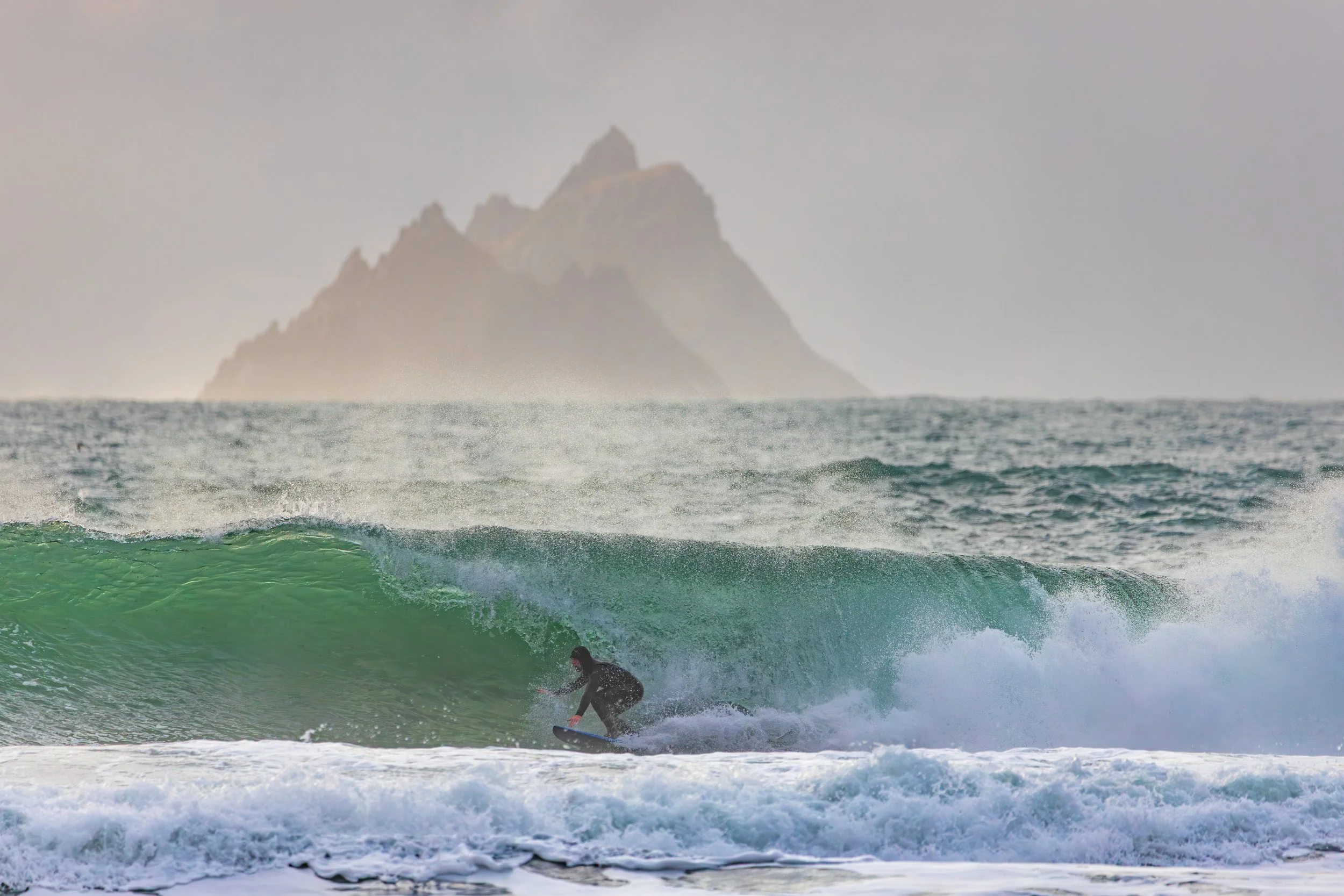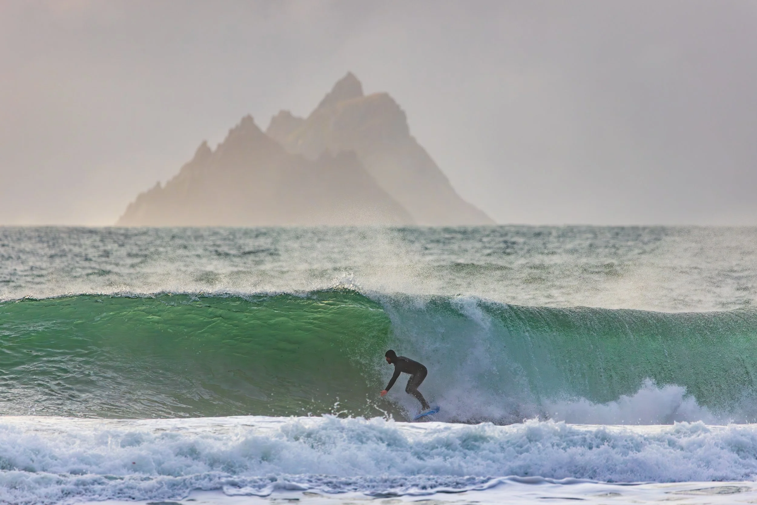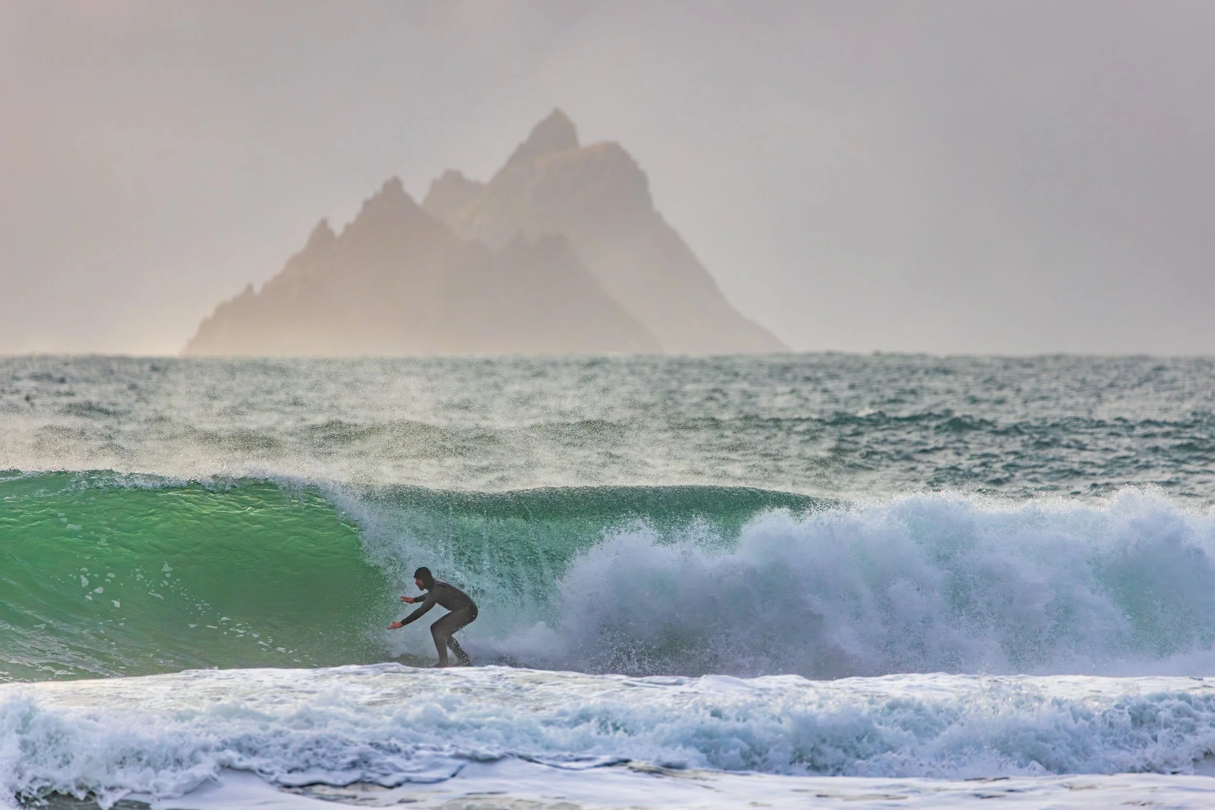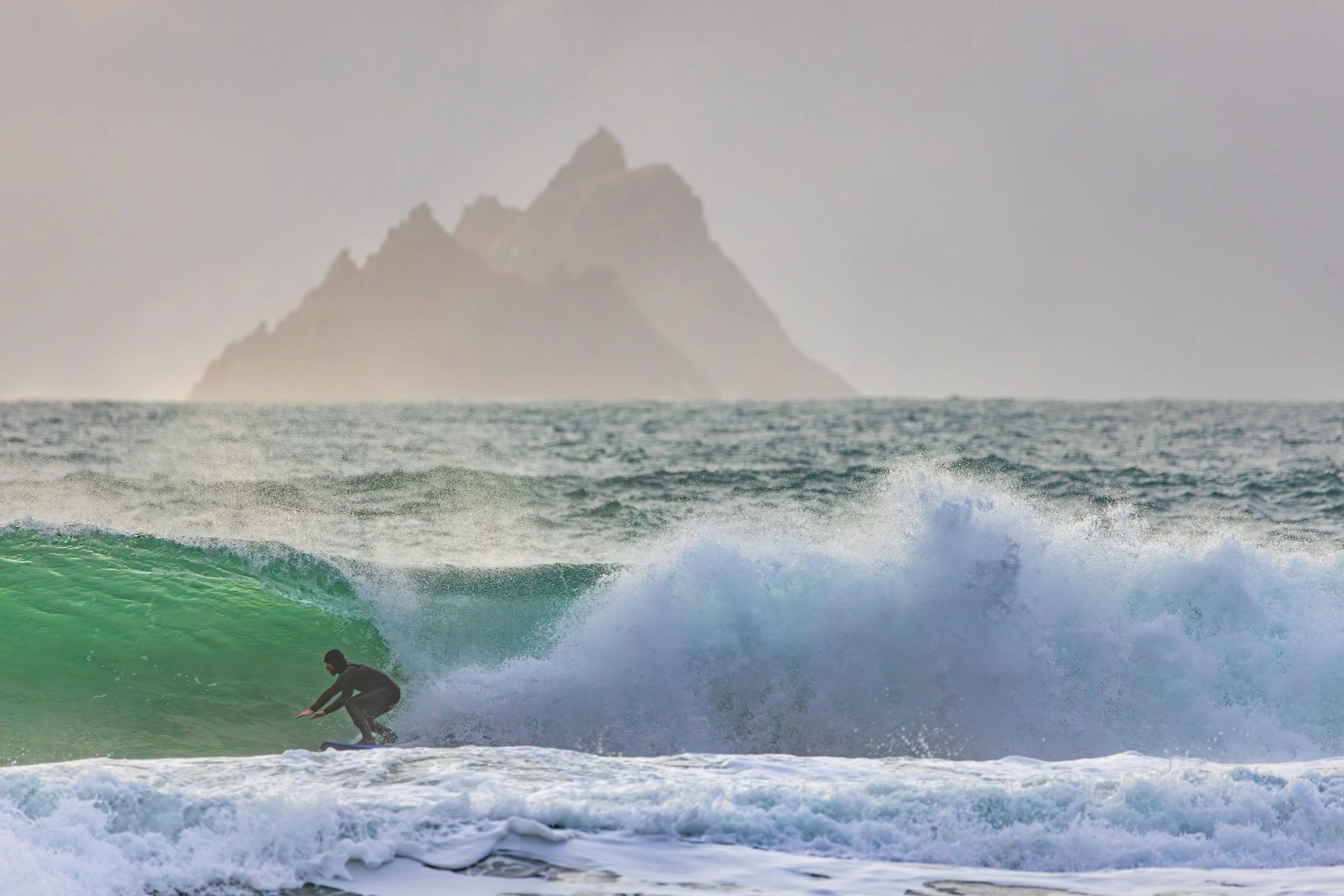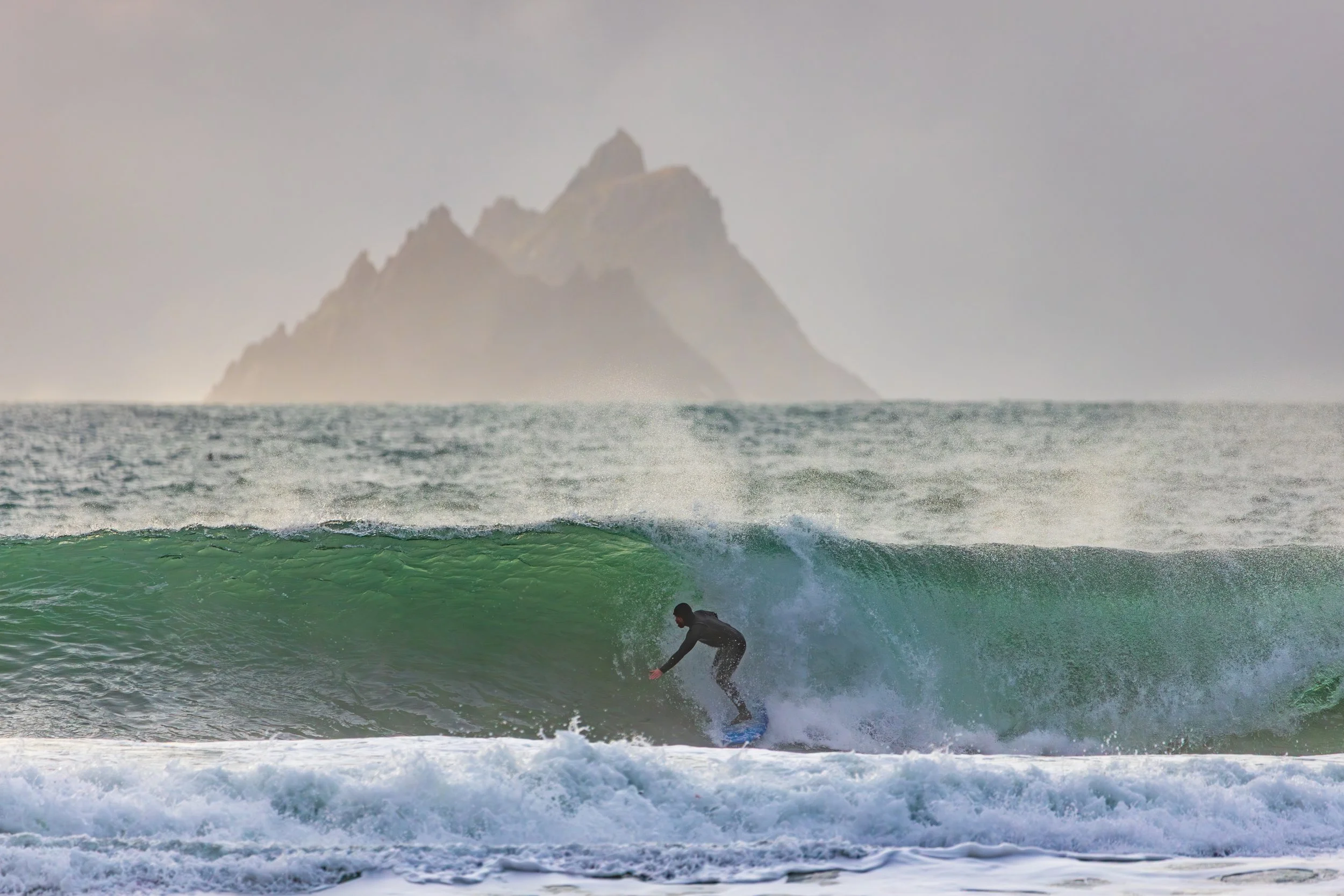 A day earlier, I’d stood in almost the same position photographing heavy waves with the Skellig Islands sitting perfectly behind them. The images worked. The Sigma 150–600mm had finally allowed me to achieve the compression I had been chasing for years at this location. I left thinking I had completed the idea.