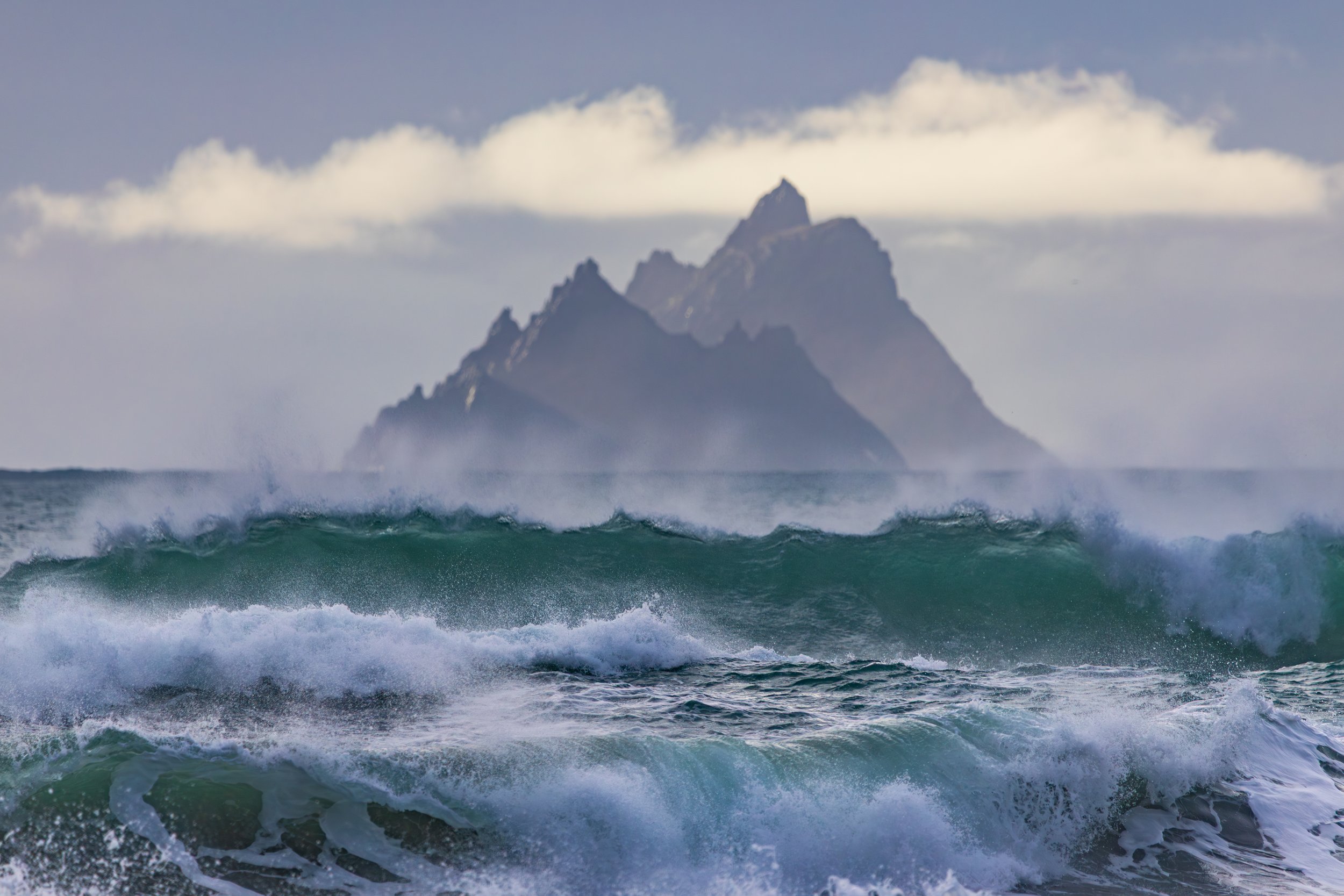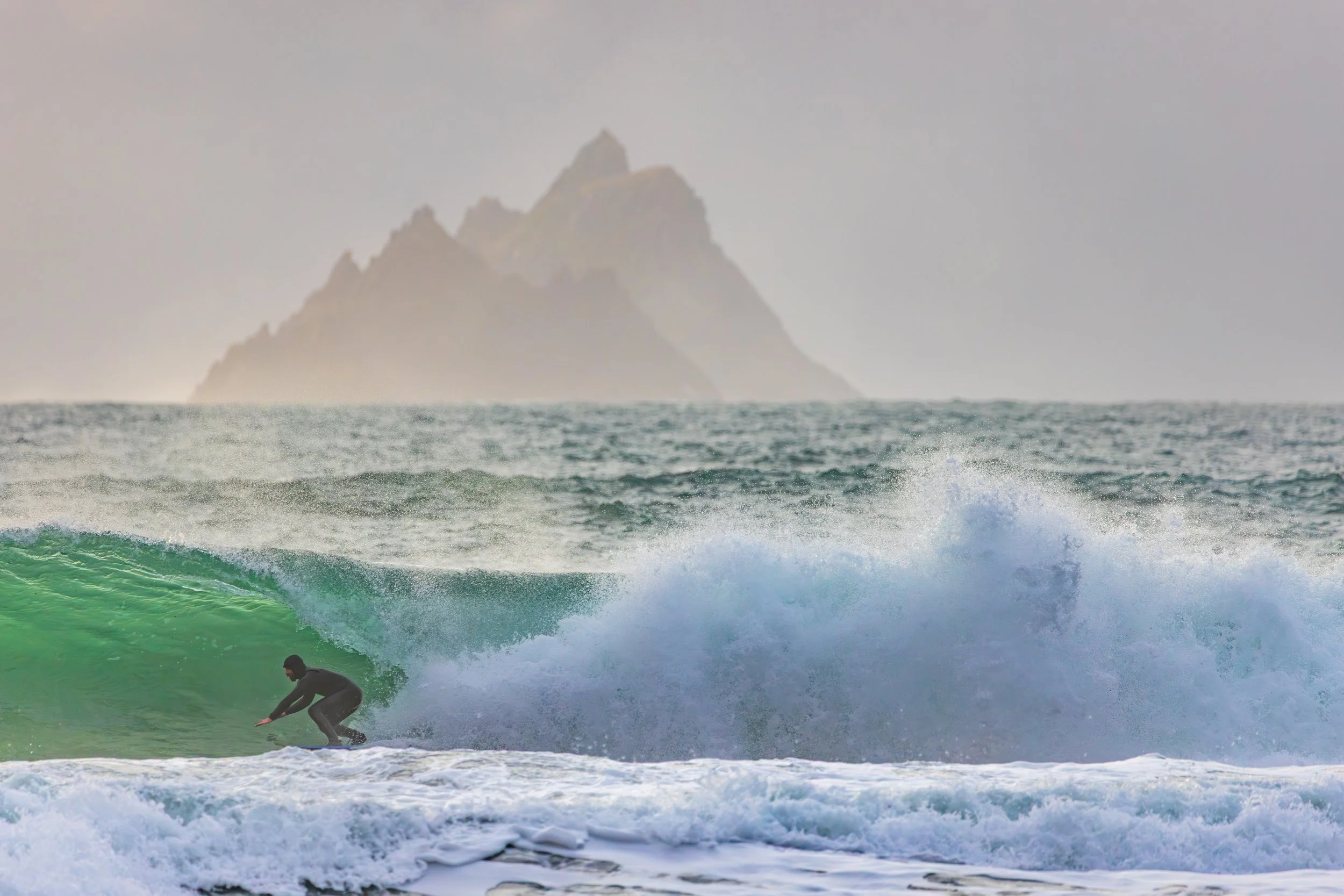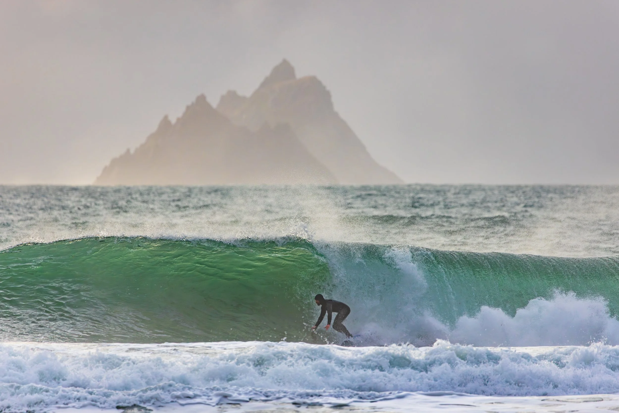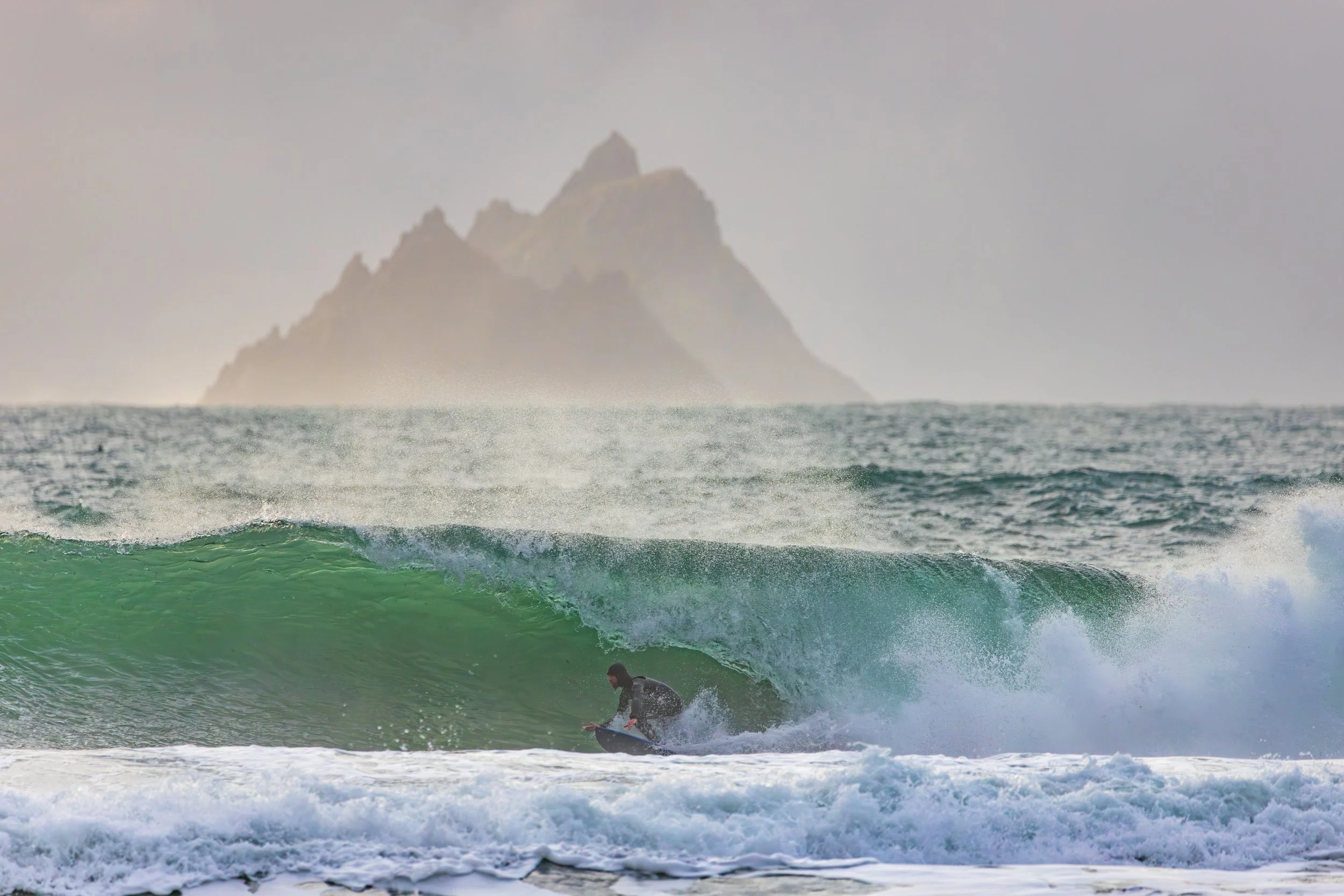 A day earlier, I’d stood in almost the same position photographing heavy waves with the Skellig Islands sitting perfectly behind them. The images worked. The Sigma 150–600mm had finally allowed me to achieve the compression I had been chasing for years at this location. I left thinking I had completed the idea.