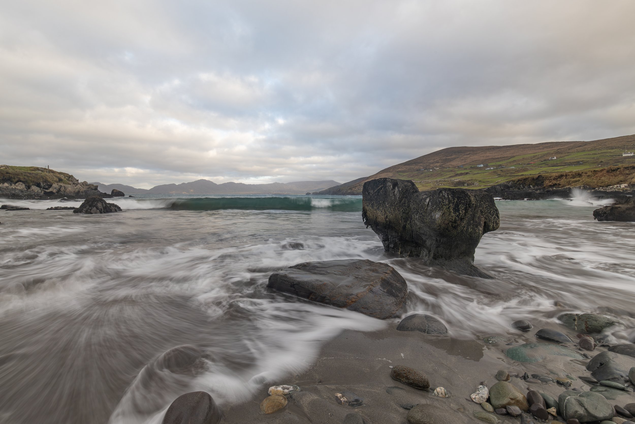 As the water ebbed and flowed, I used my polariser to see deeper into the water, revealing the rocks and pebbles at my feet. The final shots were some of my favourites from the trip. The location was magical, and the combination of perfect timing, the right shutter speed, and the right exposure settings made all the difference.